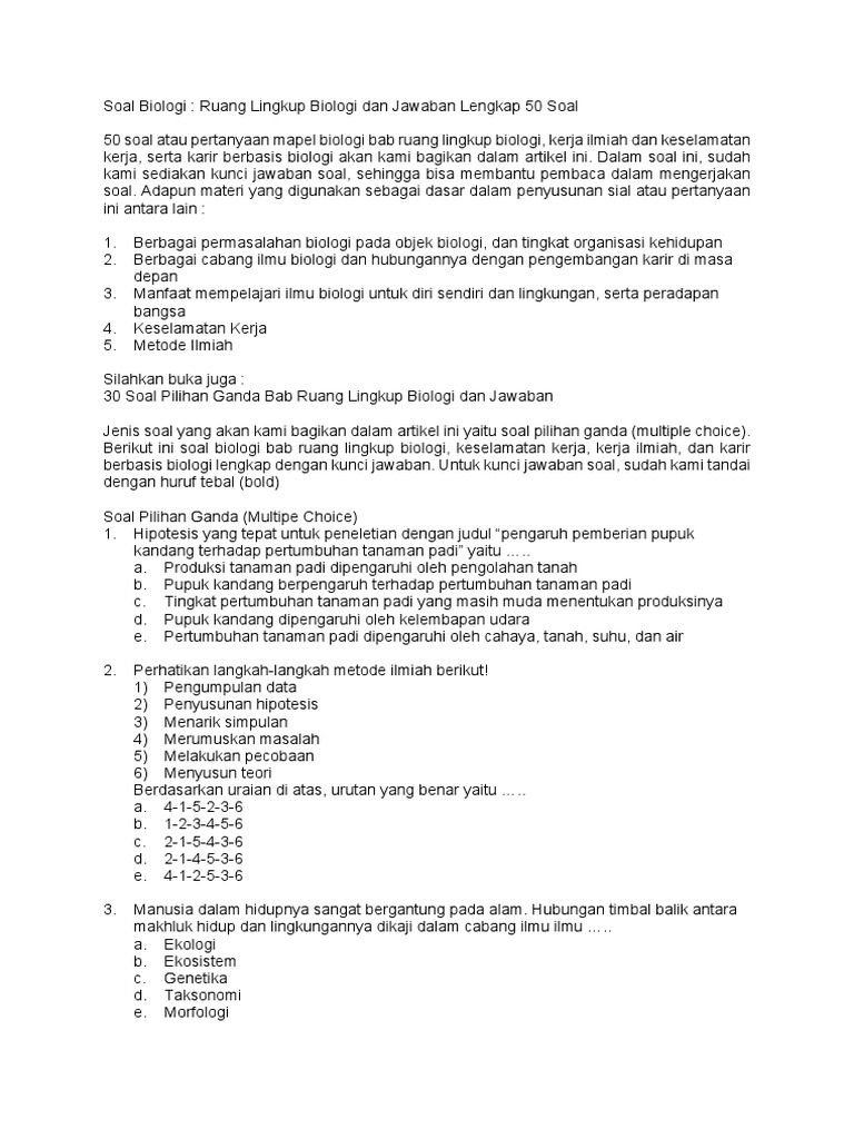 Soal Biologi Ruang Lingkup Biologi dan Jawaban Lengkap 50 Sumber : www.scribd.com